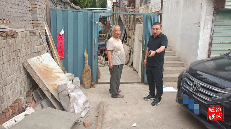 ▲潞华街道负责人到佳地花园小区督查环境卫生整治情况。