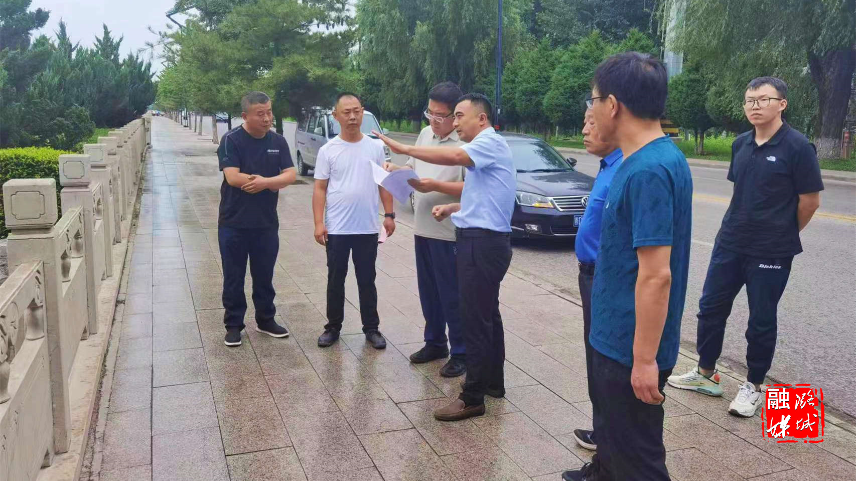 ▲区园林环卫中心相关负责人深入文华路协调文华路绿化工程推进工作。