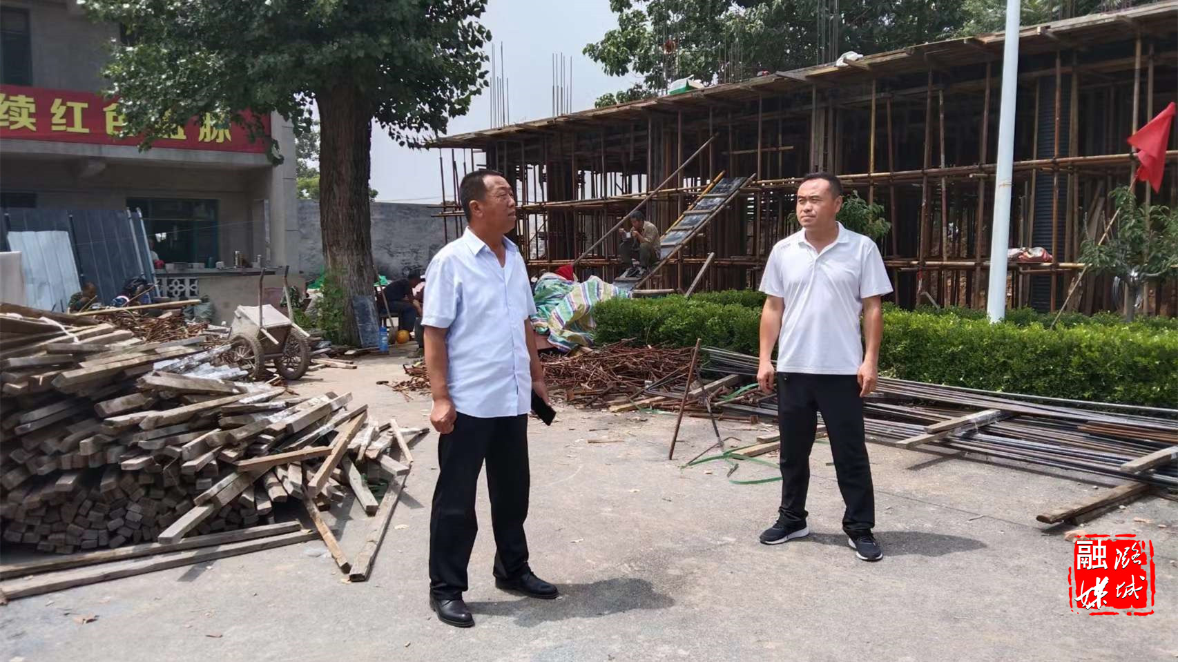★7月31日,微子镇相关负责人在神头村对民宿施工、神头之战纪念园建设等工作进行查看指导。
