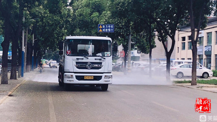 ▲区园林环卫中心出动机扫车、洒水车等特种作业车辆,对全城区域进行机械化清扫。