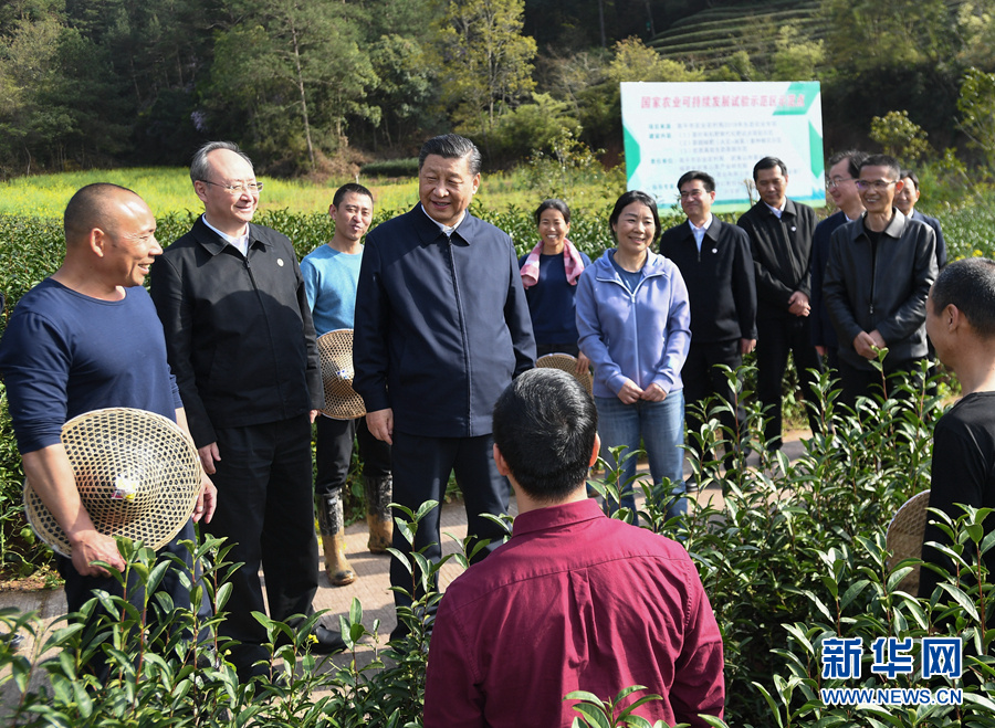 3月22日至25日,中共中央总书记、国家主席、中央军委主席习近平在福建考察。这是22日下午,习近平在南平武夷山市星村镇燕子窠生态茶园,同科技特派员、茶农亲切交流,了解当地茶产业发展情况。 新华社记者 鞠鹏 摄
