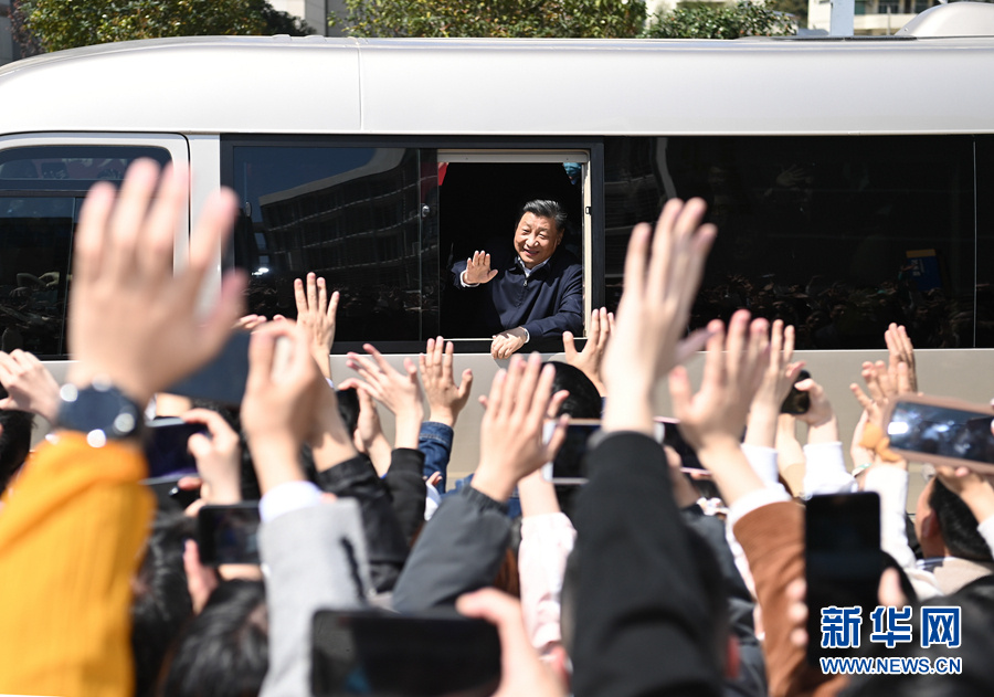 3月22日至25日,中共中央总书记、国家主席、中央军委主席习近平在福建考察。这是25日上午,习近平在福州闽江学院考察时,向师生们挥手致意。 新华社记者 燕雁 摄