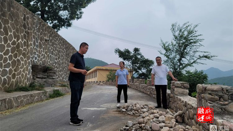 ▲黄牛蹄乡相关负责人到辛安村查看原起寺、进村路周边环境卫生整治情况。