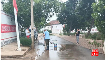 ▲成家川街道各村开展环境卫生整治,清理雨后路面淤泥。