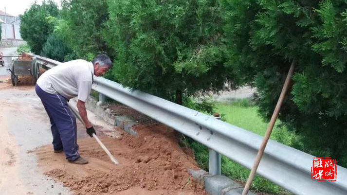 ▲史回镇曲里村对汛期损毁路基进行及时修缮加固,保障群众出行安全,筑牢汛期安全防线。