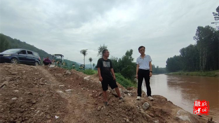▲辛安泉镇水利站工作人员在浊漳河南流段河道沿岸进行安全巡查。