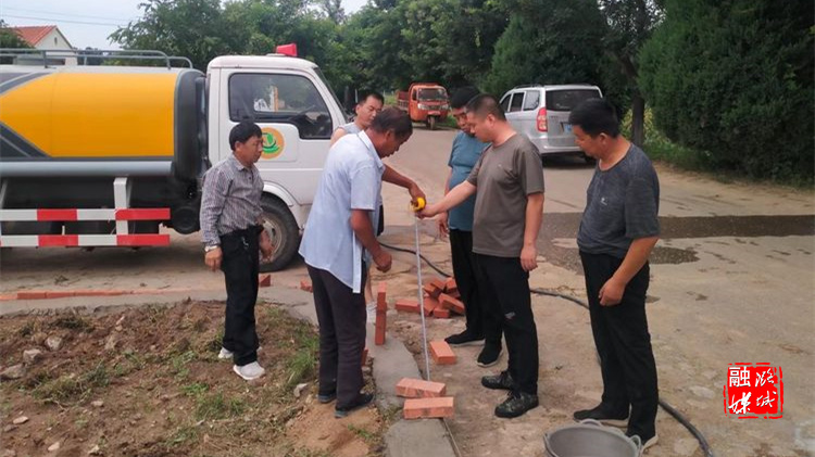 ▲辛安泉镇相关负责人在潞河村实地查看环境卫生整治提升工作进展情况。