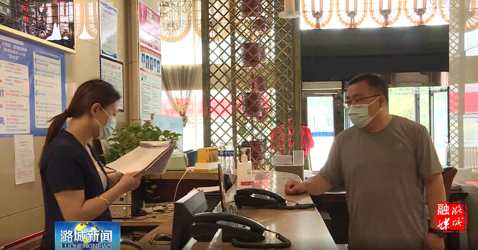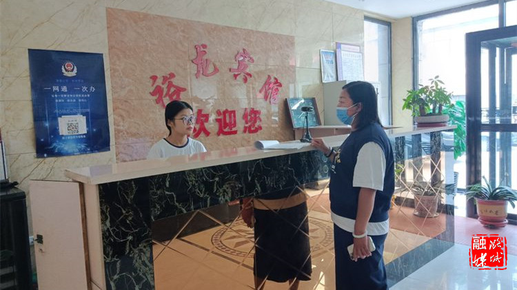 ▲店上镇相关负责人到辖区宾馆查看外来人员登记情况。