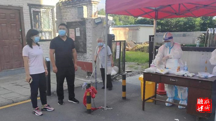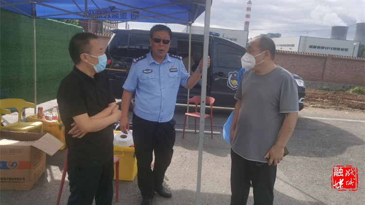 ▲成家川街道相关负责人在天脊社区督查疫情防控工作。