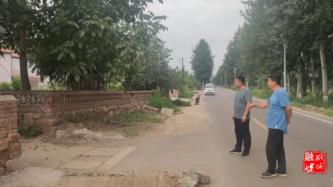 ▲辛安泉镇相关负责人在各村就通道沿线环境卫生整治情况进行督查。