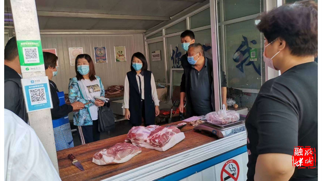 ▲潞华街道相关负责人陪同市第三疫情防控督查组到金华市场检查常态化疫情防控工作。