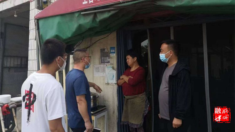▲店上镇工作人员到辖区内超市、饭店等重点场所就疫情防控落实情况进行巡查。