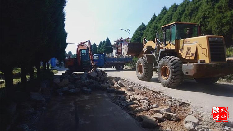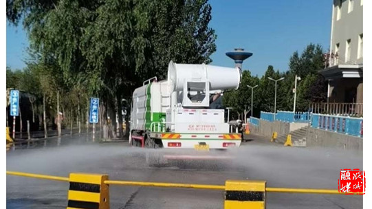 ▲史回镇各村对路面进行洒水抑尘,持续推进环境卫生整治工作。