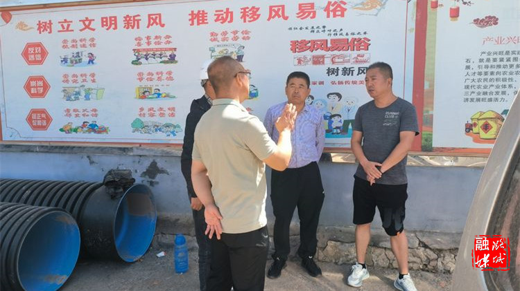 ▲微子镇相关负责人在东靳村查看人居环境整治项目建设进展情况。