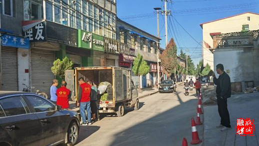 ▲潞华街道南关社区工作人员对合意街店外摊点进行集中整治。