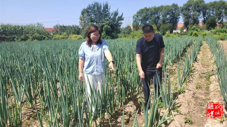 ★9月6日,成家川街道相关负责人在苗家村查看大葱生长情况。
