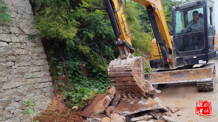 ▲微子镇漫流岭村组织工作人员维修村内损毁道路。