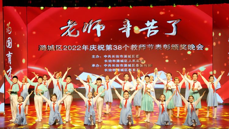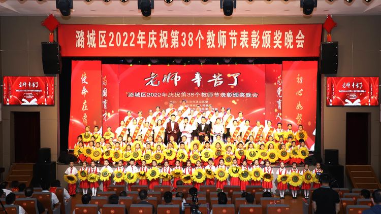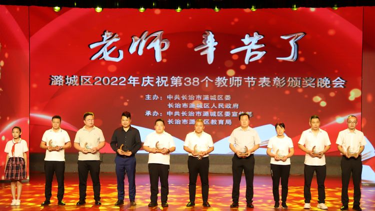 师恩难忘意深浓,桃李人间茂万丛。在第38个教师节来临之际,9月8日下午,由区委、区政府主办,区委宣传部、区教育局承办的潞城区2022年庆祝第38个教师节表彰颁奖晚会在区人民大礼堂举行。晚会对全区教育战线涌现出的先进集体、个人以及爱心助教先进企业进行了隆重表彰奖励,引导鼓励广大人民教师、教育工作者对标先进、见贤思齐,在新征程上顽强拼搏、不懈奋斗。段尧刚、柴哲、翟勇、琚海鹏等区四套班子领导与广大干部群众一同观看演出。