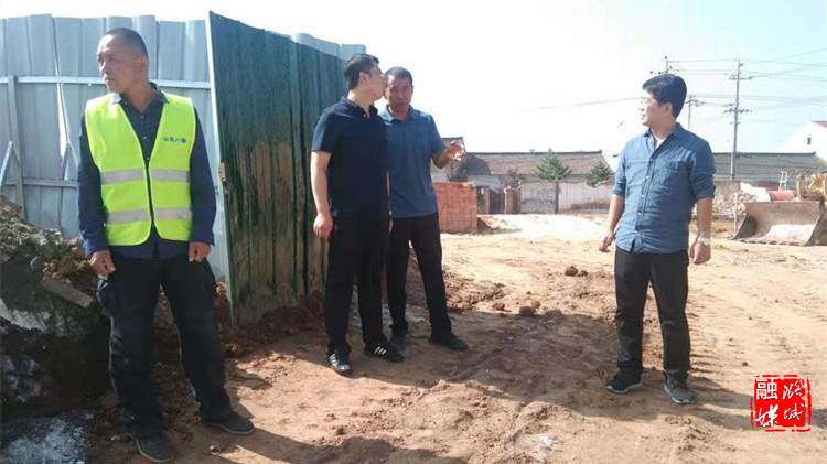▲翟店街道负责人在羌城村查看集中供热工程进度。
