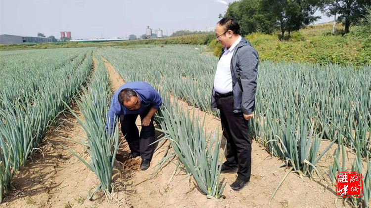 ★9月18日,微子镇相关负责人在王都庄村查看经济合作社种植的大葱长势。