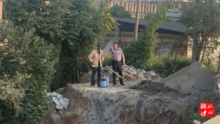 ▲微子镇负责人查看人居环境整治项目建设进展情况。