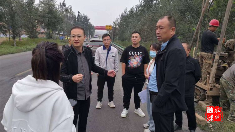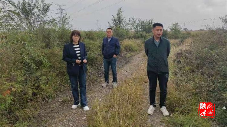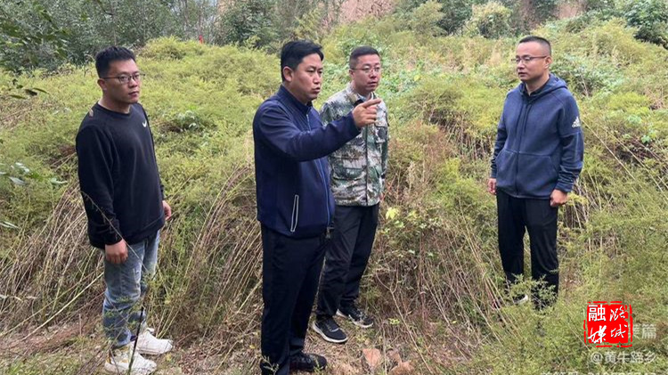 ▲史回镇相关负责人同第三方公司对小常村到大常村段道路进行实地规划修建。