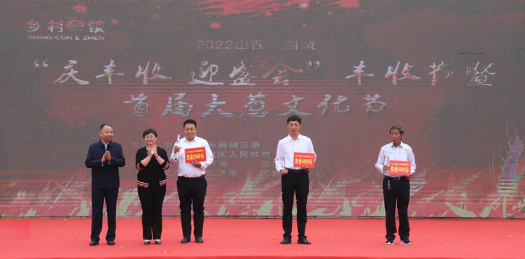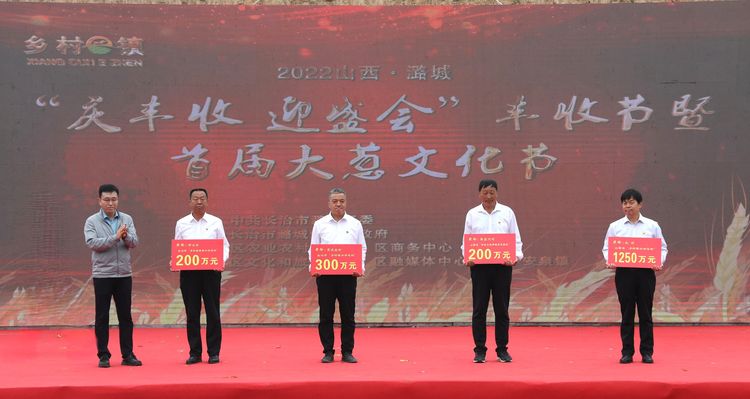 活动在喜庆的锣鼓表演中拉开了序幕,现场通过视频连线集中展示了我区中药材、高粱、设施蔬菜、旱地西红柿和大葱等五大特色板块核心区的丰收景象。对荣获山西省“乡村振兴示范村”称号的店上镇北村、山西省“有机大葱种植示范基地”称号的潞华街道张家河村、长治市“乡村振兴示范村”称号的辛安泉镇西流南村、长治市“乡村旅游振兴示范村”的微子镇神头村进行表彰,并分别颁发1250万元、200万元、300万元及200万元的专项奖补资金。对潞城区凤栖桥酿业有限公司等6家农业产业链重点龙头企业进行表彰。对10大新农技能人才和首届“葱王争霸赛”评选出的“大葱产量王”、“大葱销量王”、“大葱种植王”进行表彰,并根据《潞城区关于支持乡村振兴人才发展六条措施》,对评定的乡村工匠各类技能人才,一次性给予5000元的资金奖励,进一步激发了全区广大农业主体和农民群众发展特色农业产业、创造美好生活、实现共同富裕的干劲。