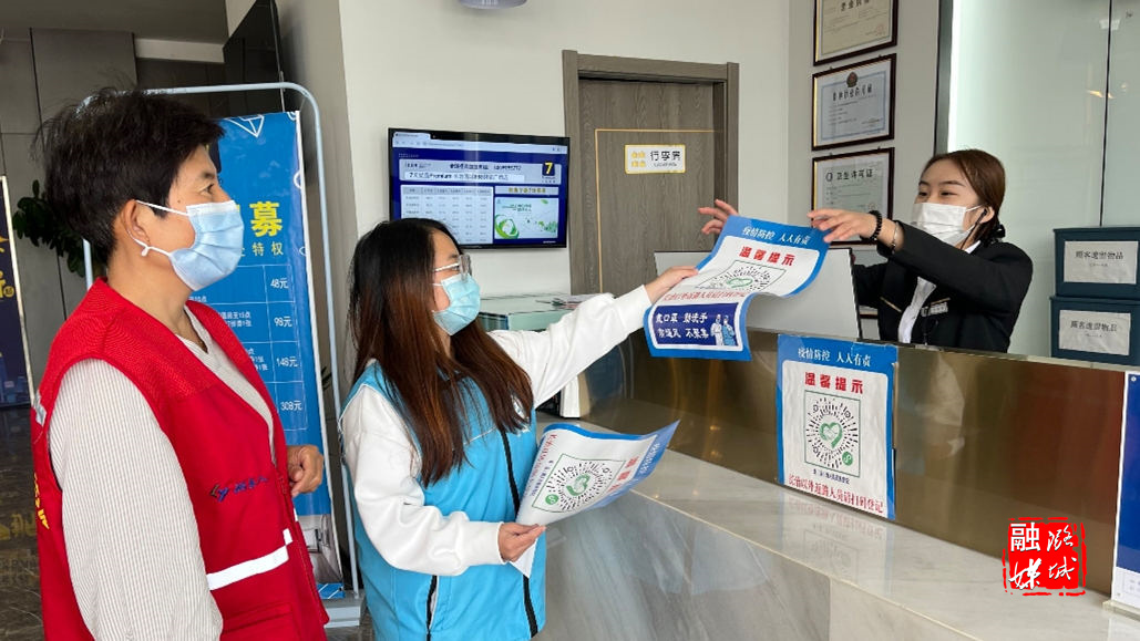 ▲潞华街道新华社区、西华社区工作人员到辖内酒店张贴返潞人员登记小程序单页,并告知酒店工作人员严格落实疫情防控管控措施。