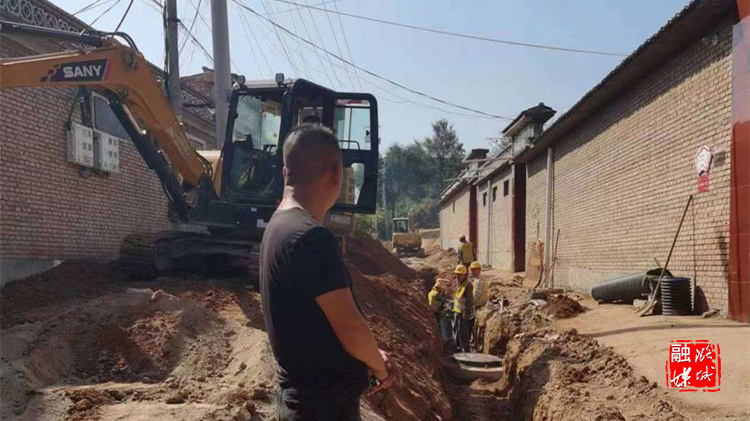 ▲微子镇工作人员在东靳村查看人居环境整治项目建设施工情况。