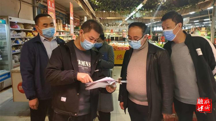 ▲微子镇相关负责人在超市、饭店等重点场所就食品安全和疫情防控落实情况进行检查。
