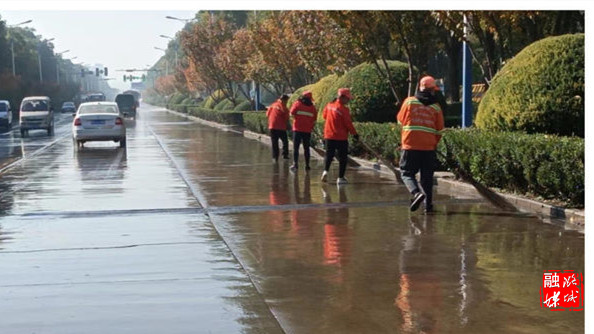 ★10月23日,区园林环卫中心工作人员对部分路段进行清洗,减少扬尘污染。