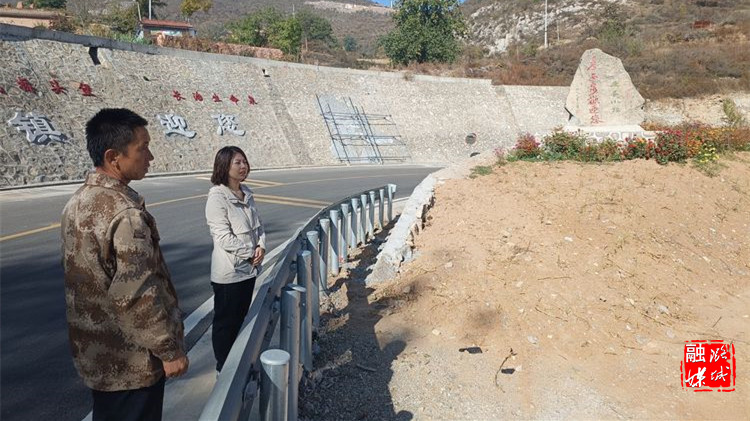 ★10月23日,辛安泉镇负责人在五里坡村查看潞石线辛安泉段沿线文化墙建设进度。