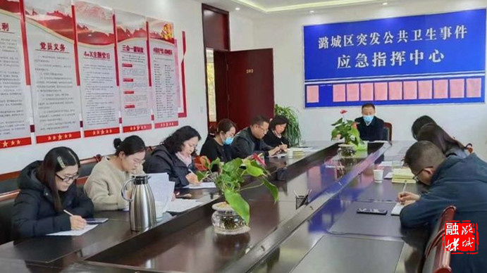 ▲潞华街道南华社区召开疫情防控工作会。