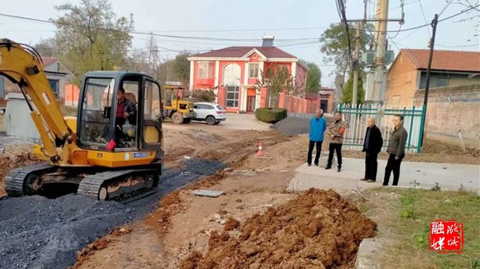 ▲微子镇相关负责人在王都庄村查看人居环境整治建设项目进展情况。