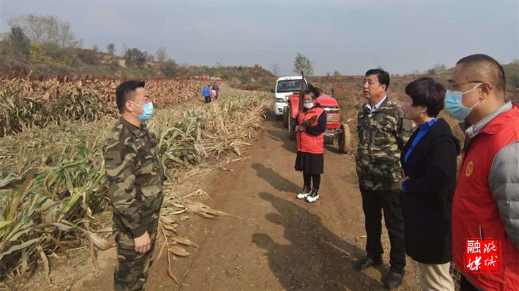 ★10月27日,微子镇工作人员在李家庄村了解高粱收获情况。