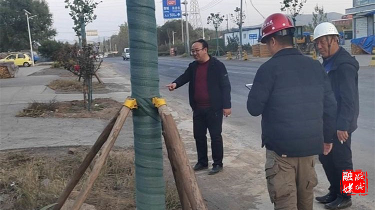 ★10月30日,微子镇相关负责人在微子村查看人居环境整治建设项目公路沿线绿化规划情况。