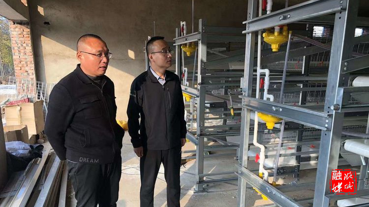 ★11月4日,黄牛蹄乡负责人到杨庄村查看肉鸡养殖项目建设情况。