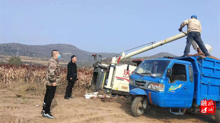 ★11月5日,微子镇相关负责人在韩家园村查看高粱收割情况。
