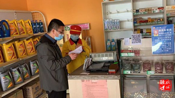 ▲区市场监督管理局工作人员对火车站周边各类市场主体疫情防控落实情况开展“回头看”。