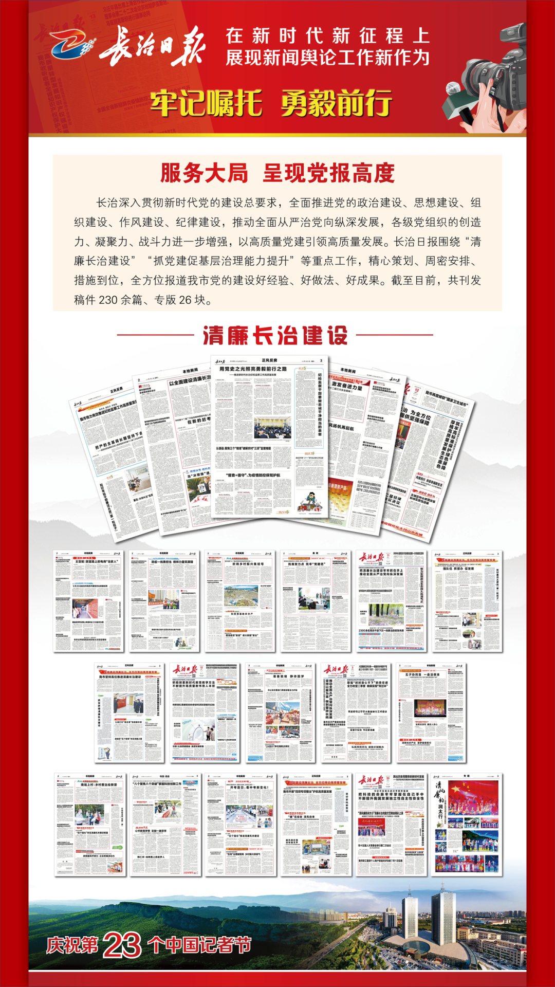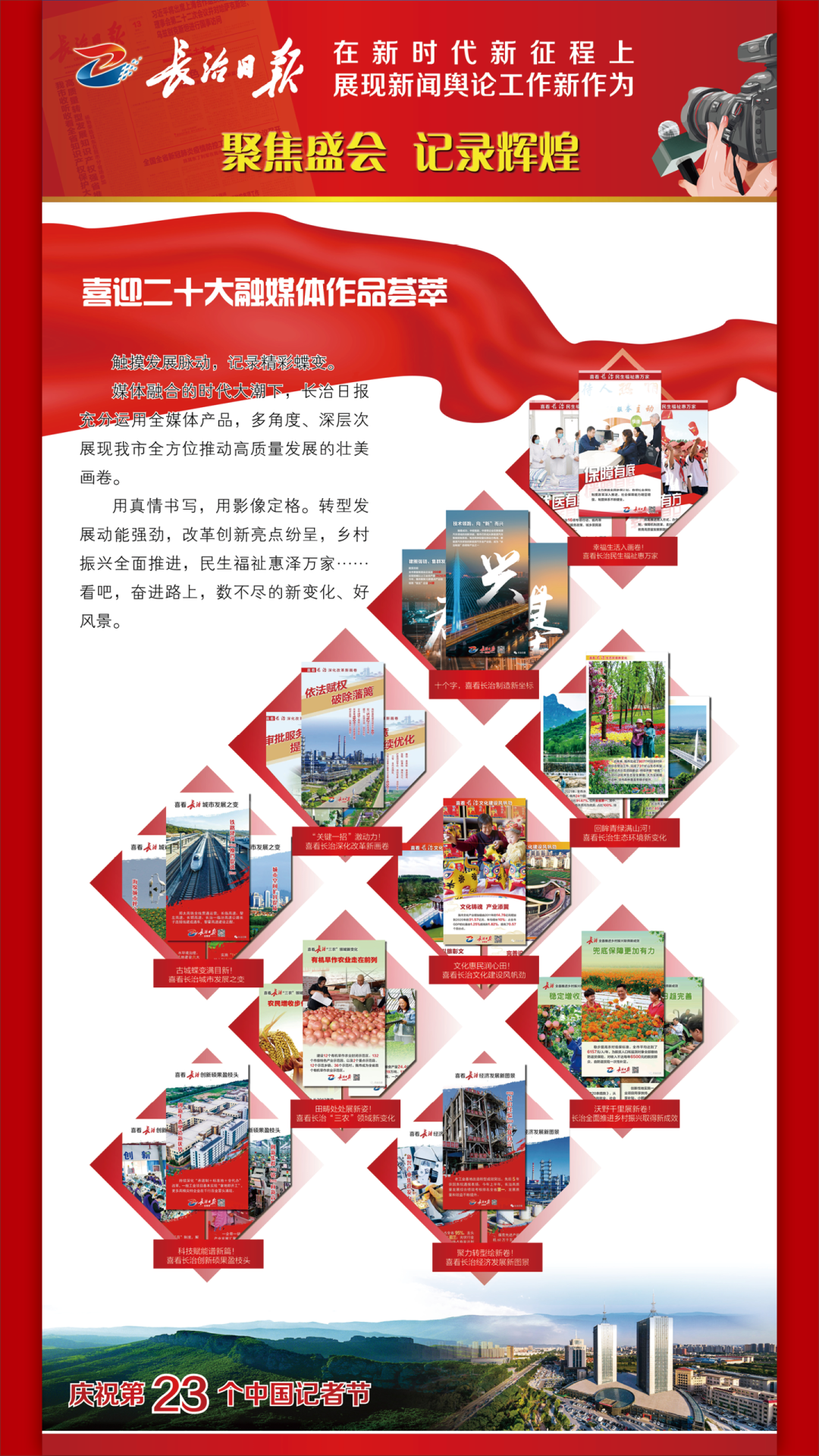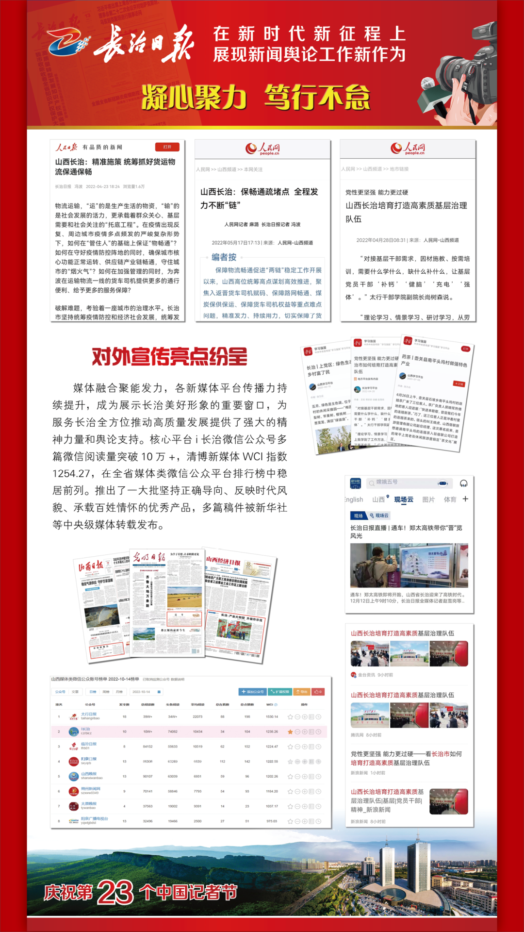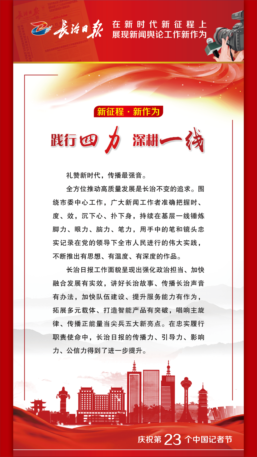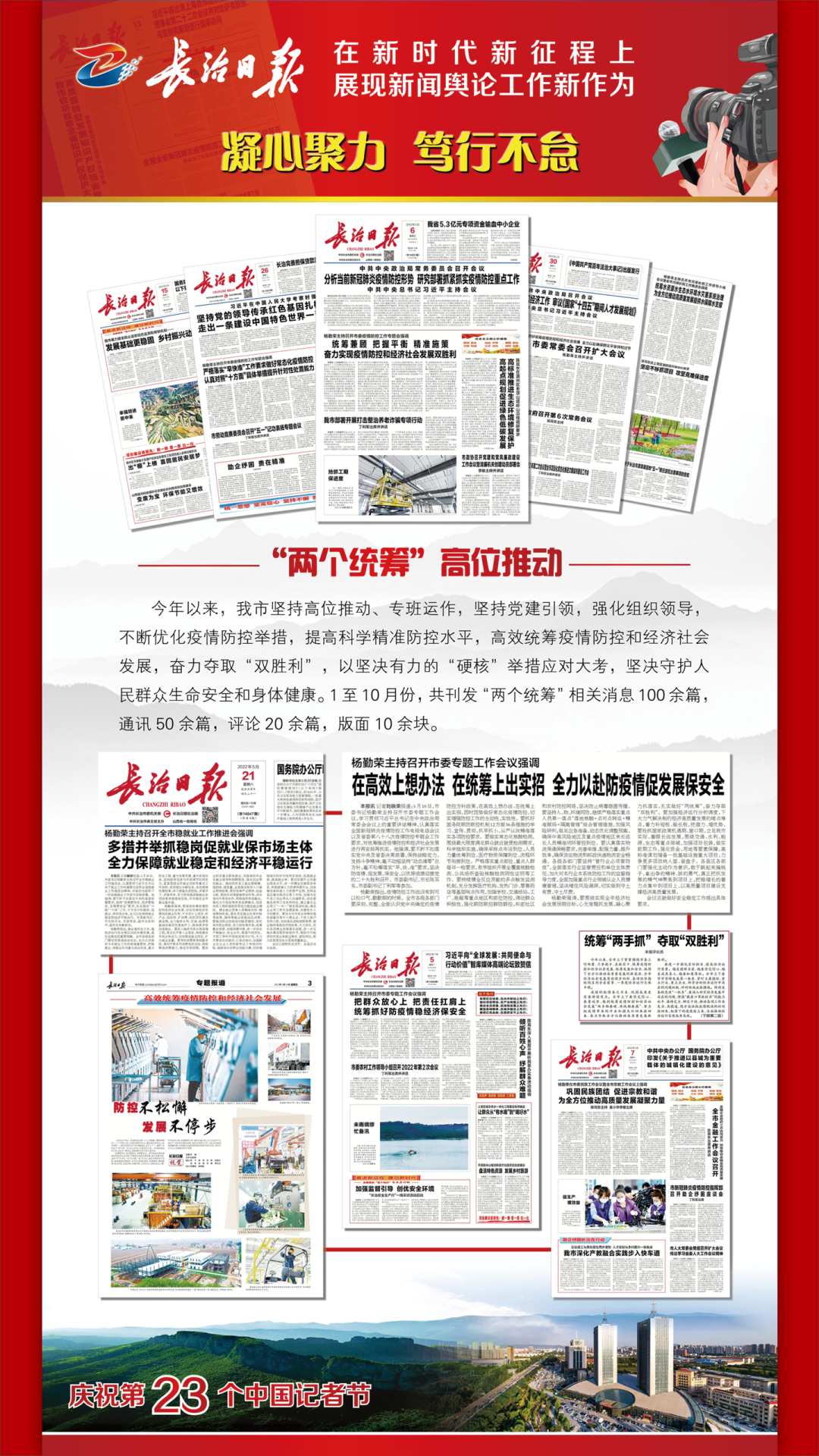 踔厉奋发书华章,乘势而上向未来。当前和今后一个时期,学习宣传贯彻党的二十大精神是我们的首要政治任务。我们将以对党的绝对忠诚,以更加昂扬奋进的姿态,持续讲好新时代长治故事、传播好新时代长治声音,为长治全方位推动高质量发展做出新的更大的贡献。 1 来源丨长治日报