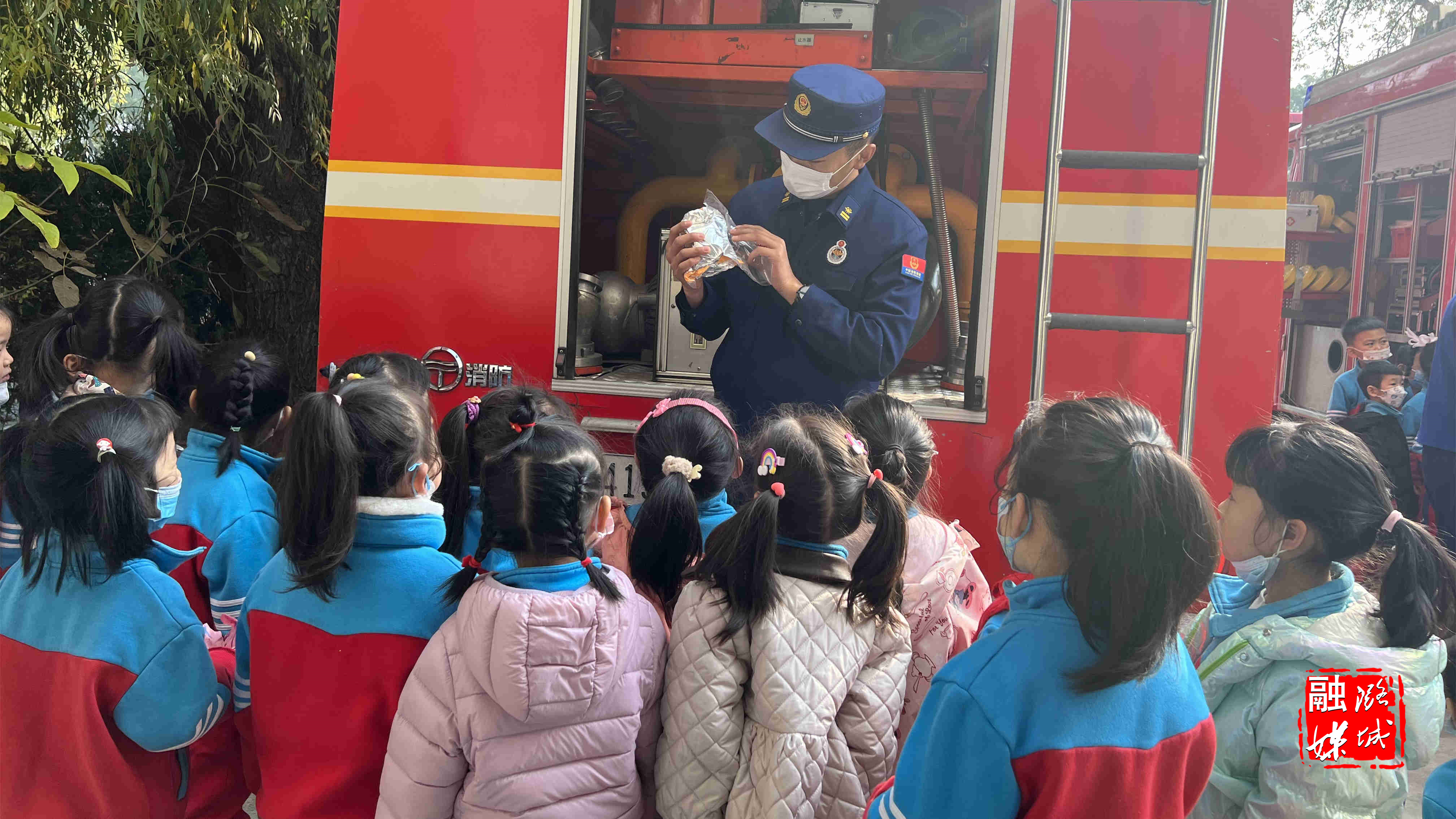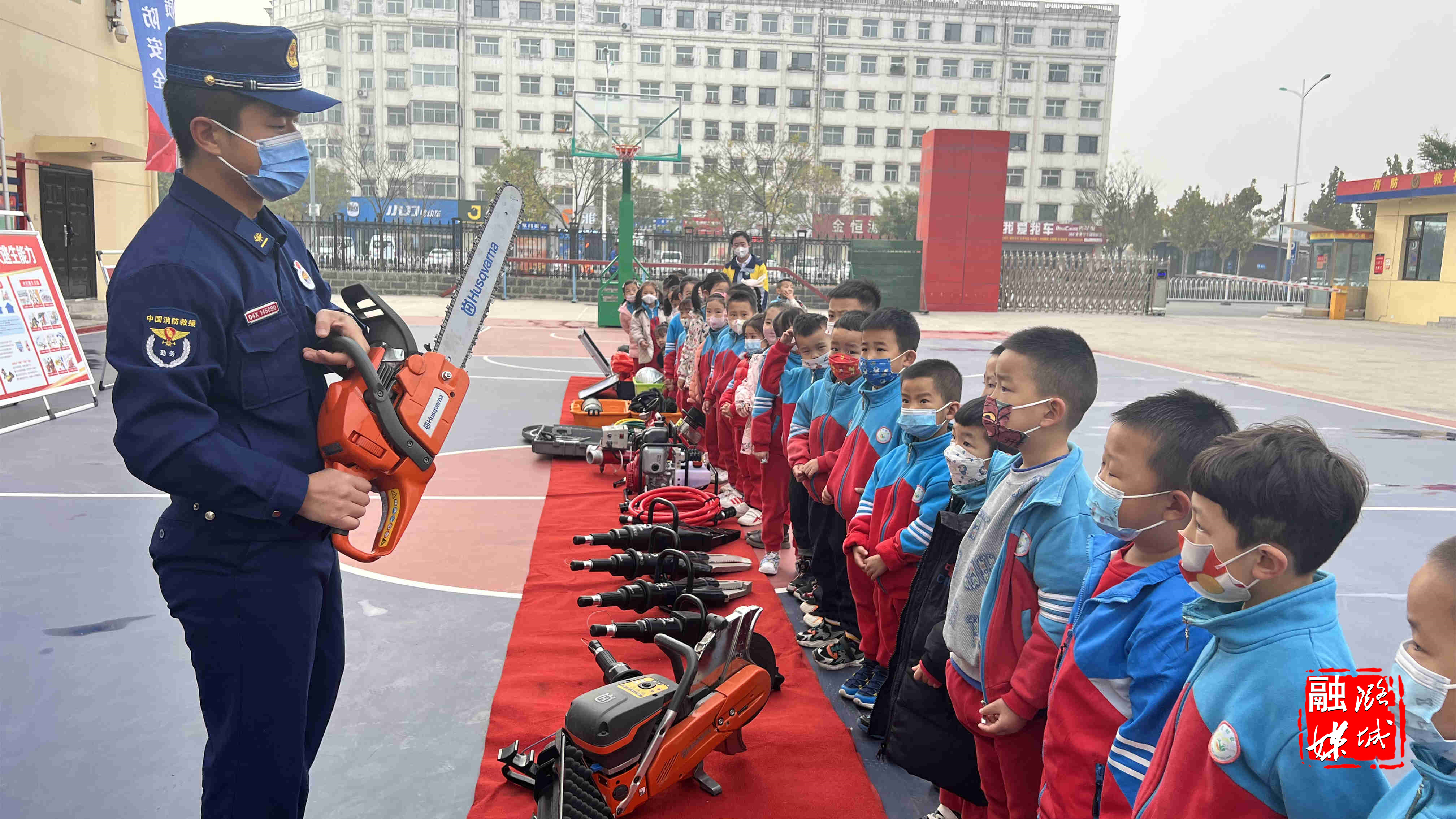 “小朋友们,你们看这个锯子像什么?”“像光头强的锯子。”“对,他就和熊出没里面光头强拿的电锯是一样的。”“砍树用的。” 在长治市潞城区西华路消防救援站的院子里,宣传员结合小朋友们年纪小、好奇心强、理解能力有限的特点,正在用通俗易懂的语言、形象生动的肢体动作,耐心细致地介绍高压水枪、泡沫枪等各类消防器具的名称和用途。为了大家更有“体验感”,宣传员为小朋友们穿上战斗服,戴上消防头盔,坐上消防车,为小朋友开启“奇妙消防之旅”。最后,小朋友们给消防员送上了鲜花,感谢消防员叔叔为守护全区人民安全做出的贡献。