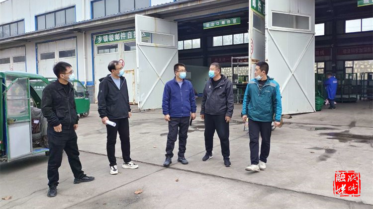 ▲微子镇工作人员在包联企业督查疫情防控工作。