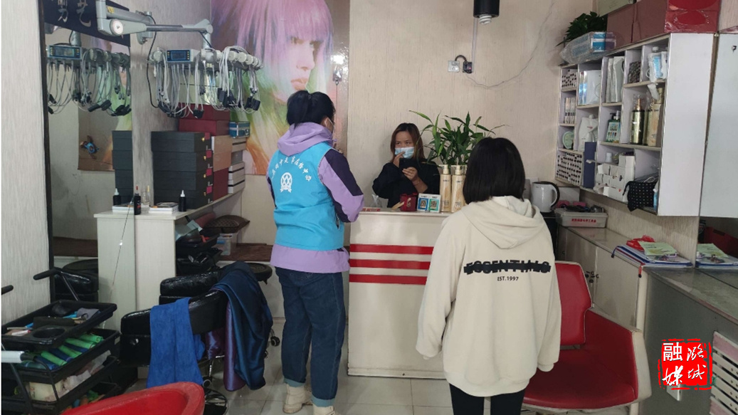 ▲潞华街道卢医社区工作人员对辖内“九小场所”疫情防控政策落实、安全用电情况及消防设施是否完善进行综合检查。