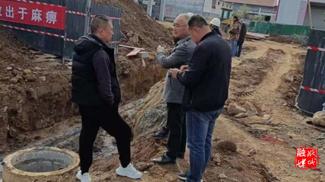 ★11月13日,微子镇相关负责人在东靳村查看集中供暖施工进度。