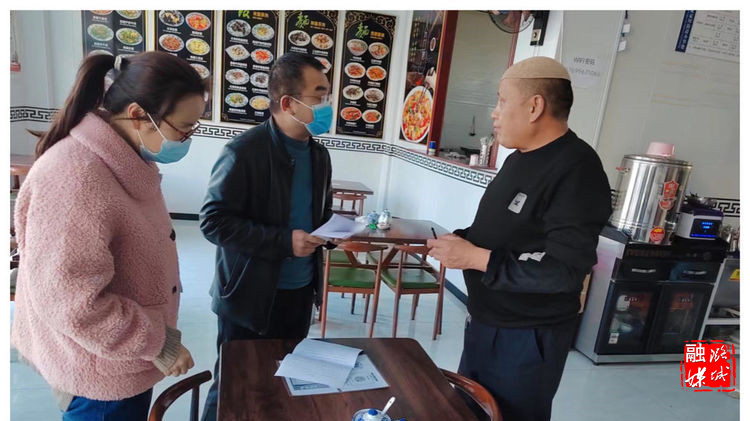 ▲翟店街道相关负责人沿街门店查看疫情防控工作落实情况。