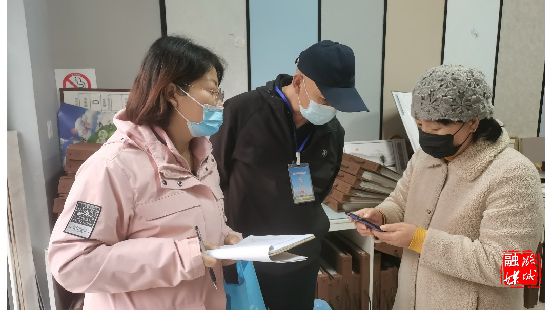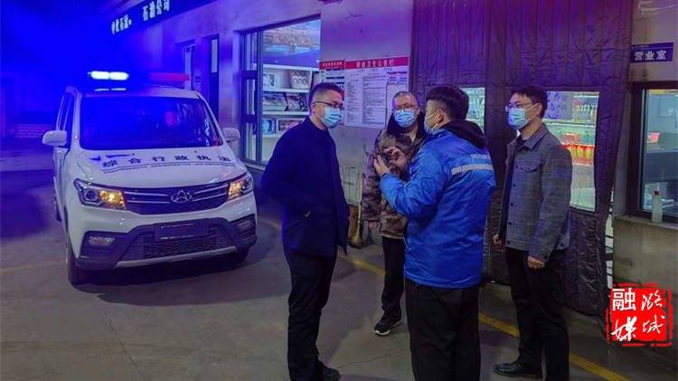 ▲成家川街道相关负责人到成家川村沿线门店督查疫情防控工作落实情况。