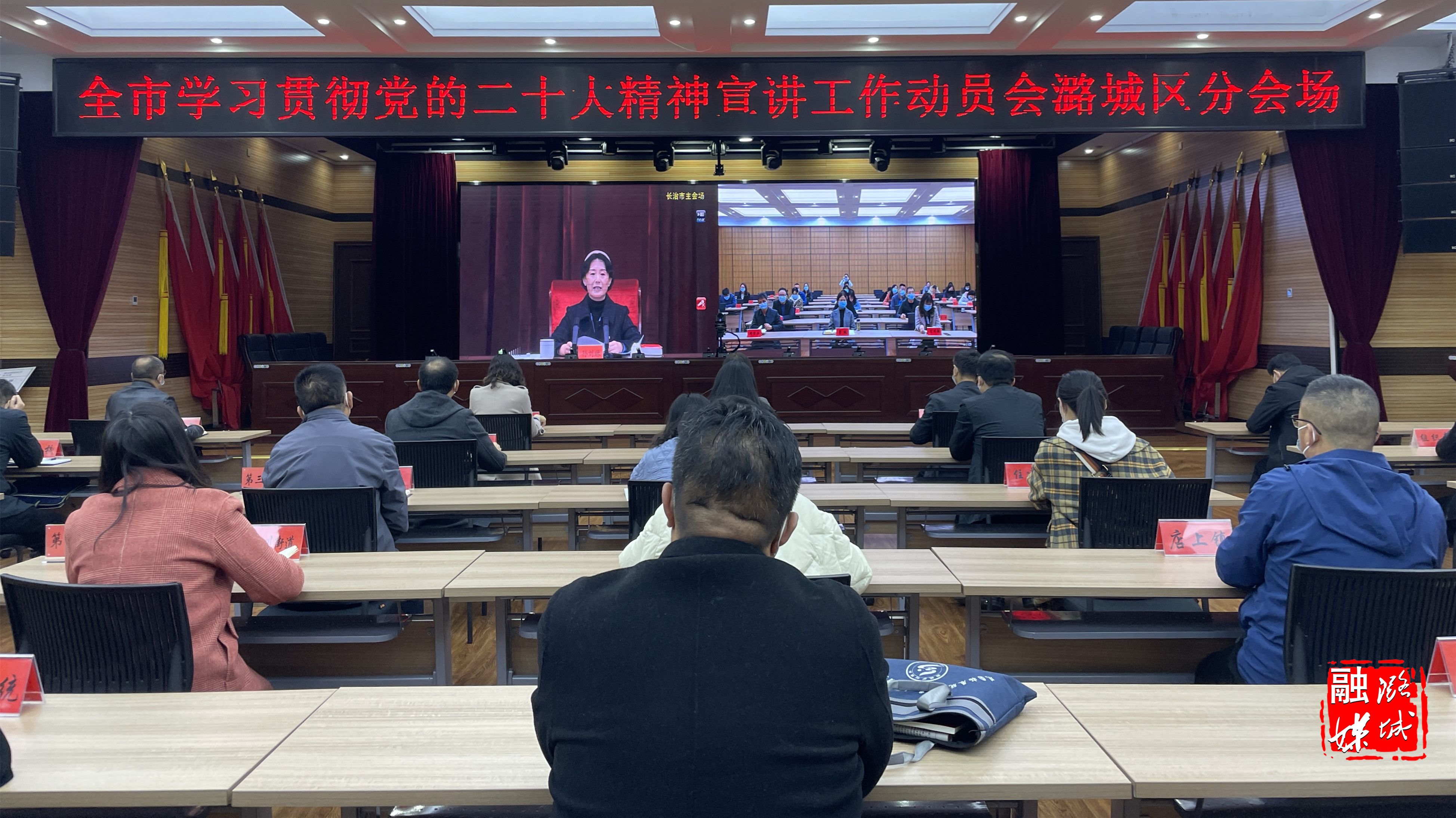 ★11月14日,全市学习贯彻党的二十大精神宣讲工作动员会议召开。区委常委、宣传部部长曹枫在我区分会场参加会议。区委宣讲团成员、各乡镇(街道)宣传委员、各系统宣传分管领导、宣传文化系统各单位主要负责人等在我区分会场收看会议实况;会后,组织参会人员收听收看全市宣传思想战线学习宣传贯彻党的二十大精神工作推进会议。