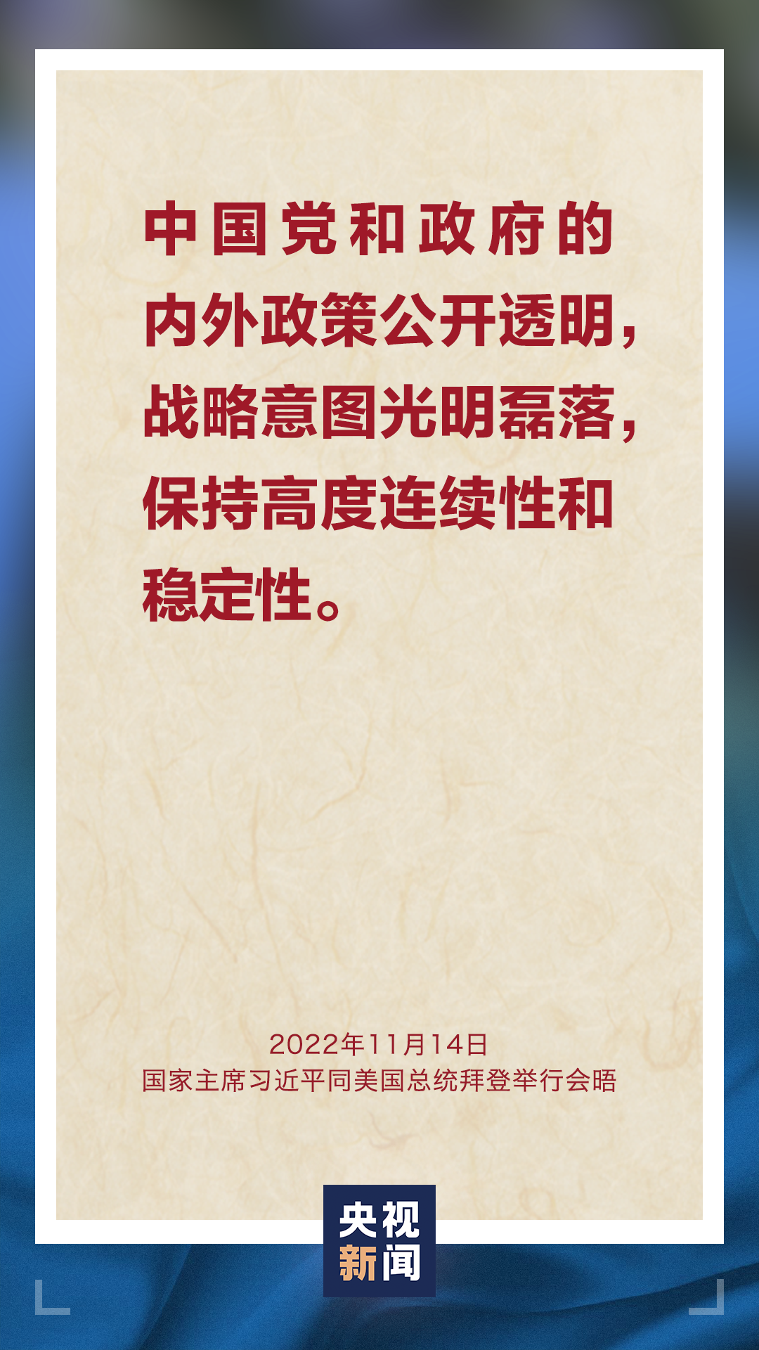 当地时间11月14日下午,国家主席习近平在印度尼西亚巴厘岛同美国总统拜登举行会晤。两国元首就中美关系中的战略性问题以及重大全球和地区问题坦诚深入交换了看法。
