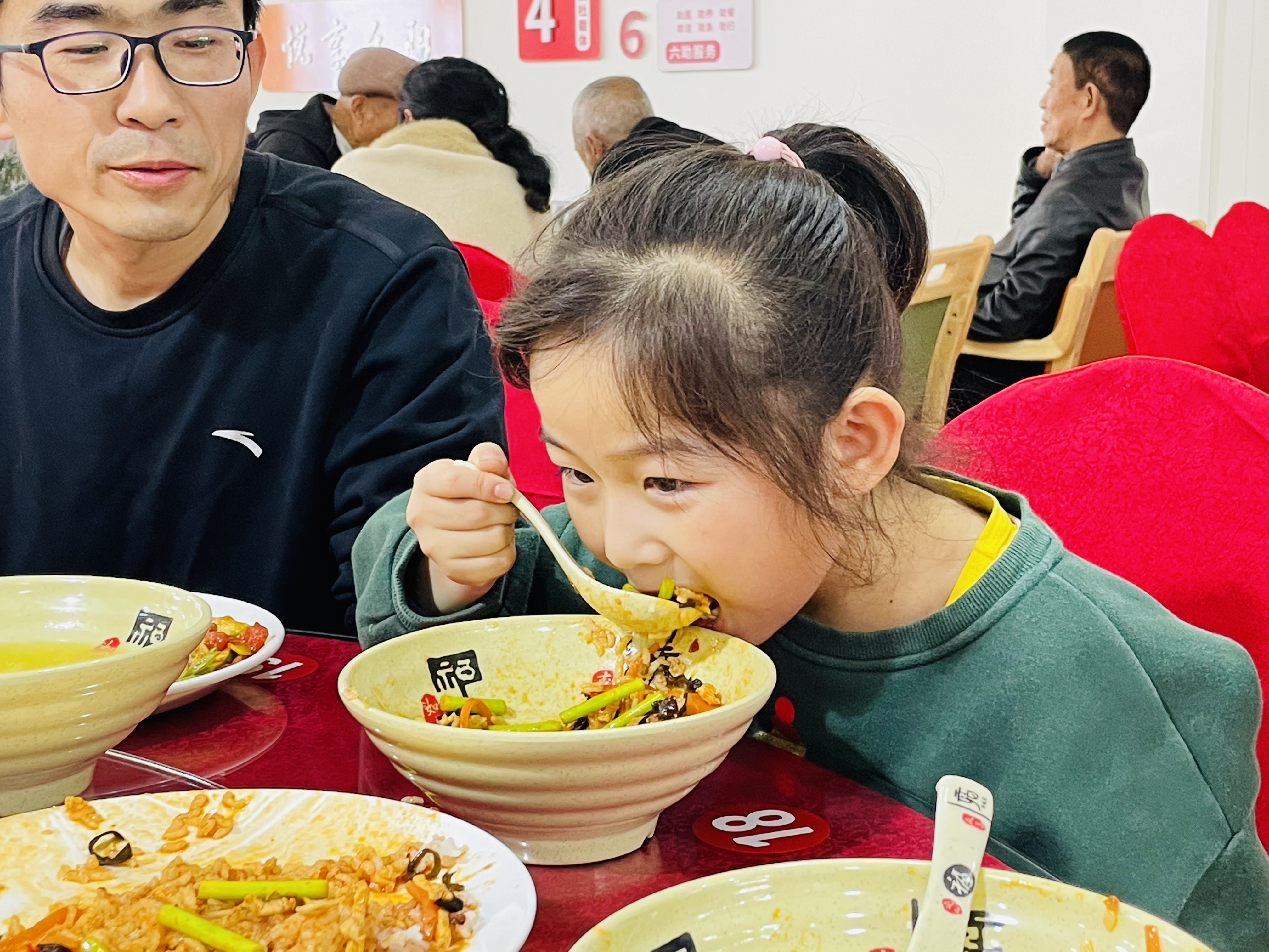 干净整洁的桌椅、健康可口的饭菜、热情周到的服务......趁着饭点,记者来到了位于山西长治潞城区兴禾花园小区内的“悦享夕阳”学府社区养老幸福园的社区食堂。一进门便看到社区居民三三两两坐在一起聊天唠嗑,一旁的服务员更是贴心的将午餐一一送至行动不便的老人面前。