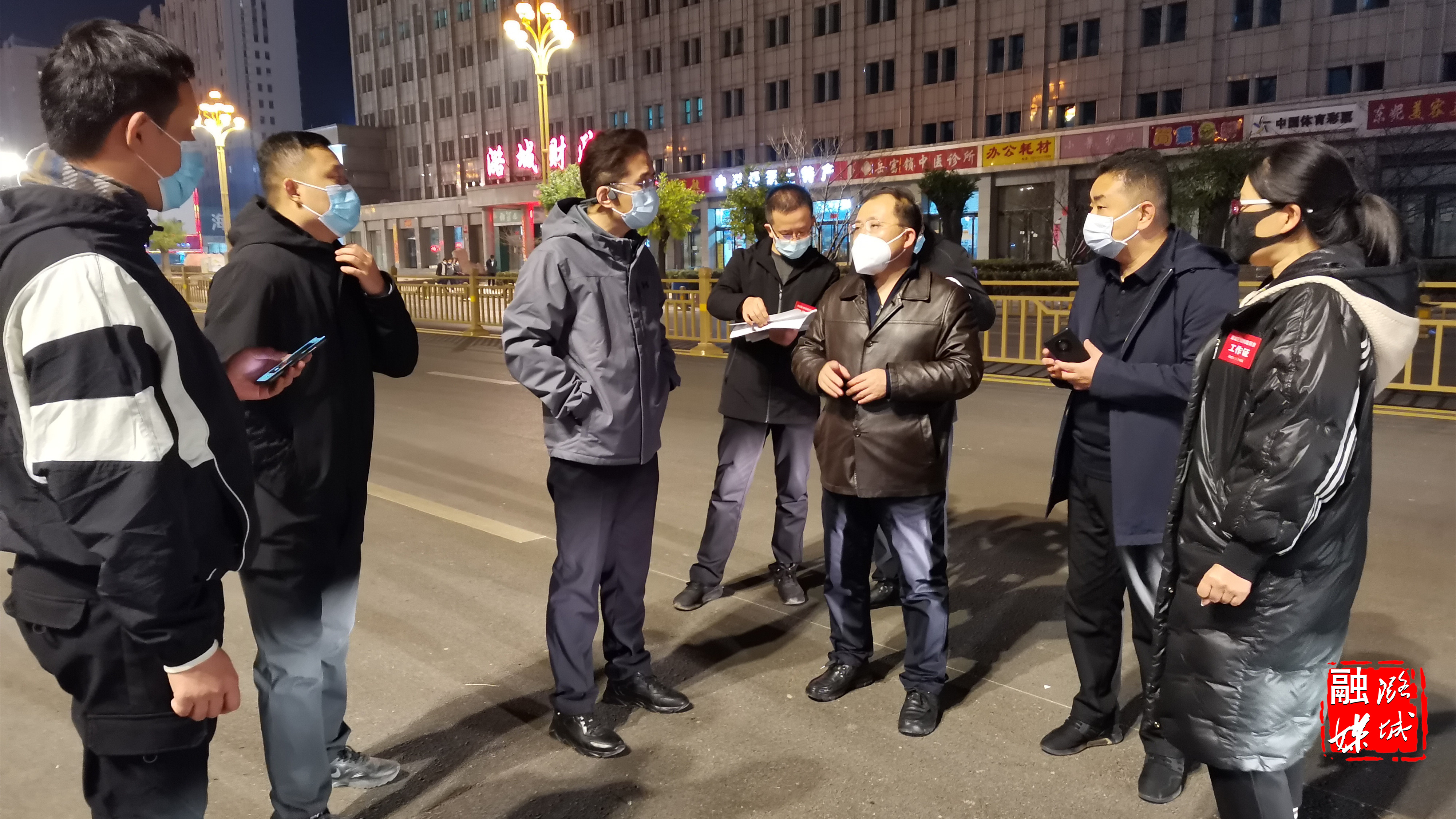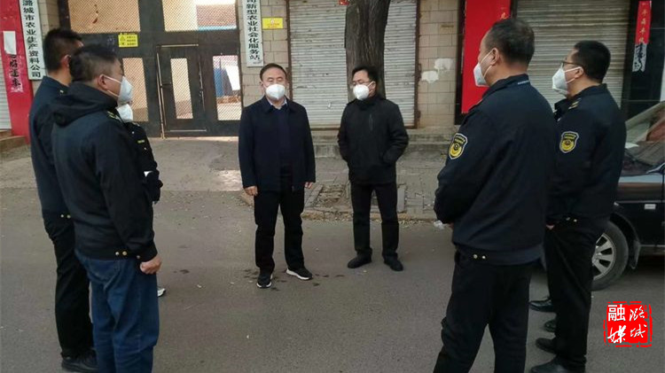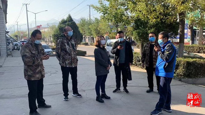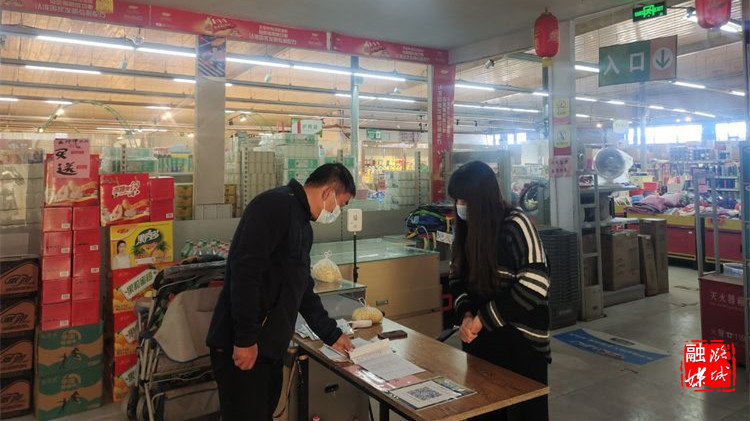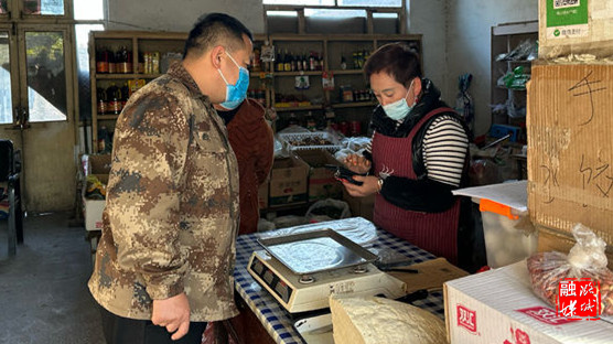 ▲辛安泉镇相关负责人在辖区门店督查疫情防控措施落实情况。